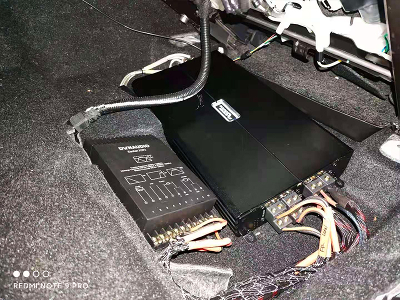 DSP和低音炮還有功放的安裝!DSP是直接用專用線對插中控臺的,不需要改線之類的,低音炮我們也做了相對應(yīng)的繼電保護(hù)。