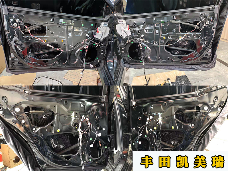 第二層隔音密封整個(gè)車門,做好第二層隔音之后就可以直接安裝喇叭了,這次的防水罩是放在里面。更換一個(gè)凱美瑞的喇叭墊就可以直接把喇叭裝上去了。