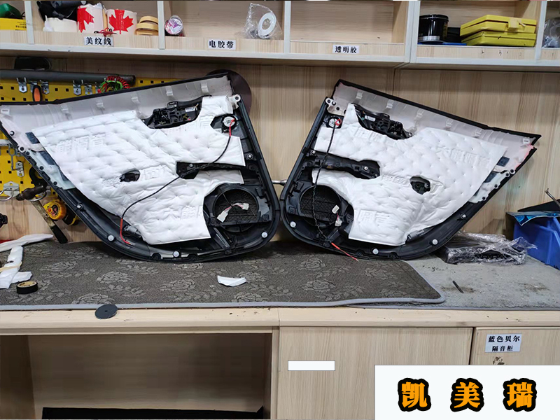 前后門的中低音安裝是老樣子,一樣是無損升級(jí)。就是三層隔音做好,直接安裝喇叭就可以了。隔音材料用的是大能的藍(lán)金剛。