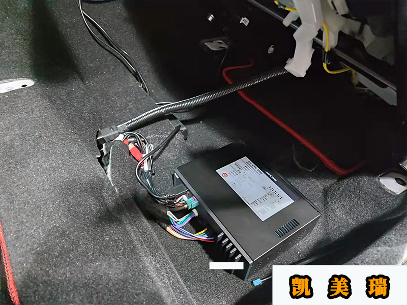 JBL的超薄低音炮和M08的主機(jī)都是放在座位下面的,主駕駛一個(gè),副駕駛一個(gè),其中這臺(tái)M08是不用倒模的。因?yàn)樗目刂泼姘迨仟?dú)立的,可以放在任何地方,只要方便操作就可以了。