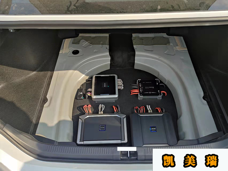 然后就是兩臺(tái)功放一臺(tái)處理器一個(gè)超級(jí)電容都是安裝在后尾箱,做了一個(gè)安裝的底板。線材都是用了嘉利堡的,全部裝好之后把原車的蓋板蓋回去就看不見了。把后尾箱的空間都利用了起來,裝再多也不會(huì)占用地方。其實(shí)這臺(tái)車主要的難點(diǎn)就是前門的倒模上和后尾箱的一個(gè)工藝。不知道你覺得這手藝可以不?