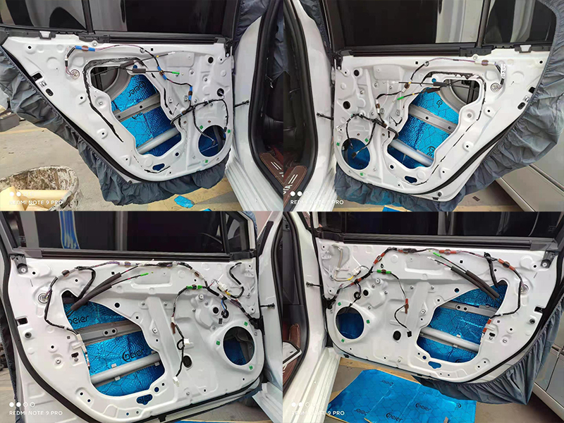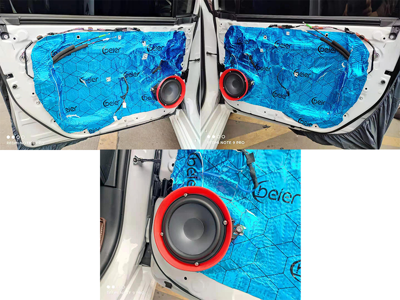 第二層隔音的原理也很簡(jiǎn)單。就是和第一層形成箱體。讓您的車門成為一個(gè)移動(dòng)的音響箱體。主要的是封閉作用。貼完第二層隔音我們就可以進(jìn)行喇叭的焊線、安裝等步驟。下方是安裝完成圖。