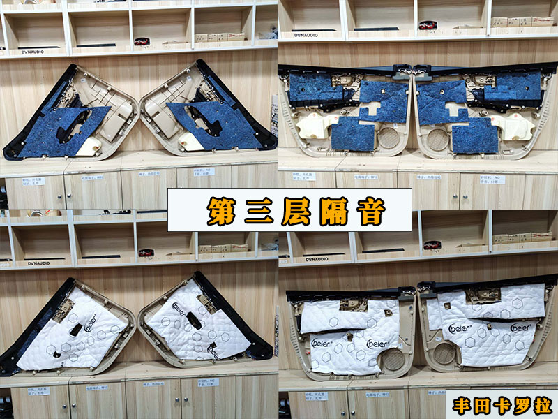 今天來(lái)看一下卡羅拉的全車(chē)隔音!有車(chē)主就好奇了,全車(chē)隔音真的有必要嗎?其實(shí)這個(gè)嘛!還是那句話,看個(gè)人需求的,有零幾年 的車(chē)一樣過(guò)來(lái)做全車(chē),全車(chē)隔音做的是葉子板,引擎蓋,四門(mén),底盤(pán),后尾箱,側(cè)壁等部位,對(duì)整車(chē)的環(huán)境有很大的改善,主要就是風(fēng)噪和某些異響。駕駛過(guò)程中車(chē)內(nèi)也會(huì)相對(duì)安靜很多。當(dāng)然還有的是車(chē)內(nèi)的音質(zhì)會(huì)好很多,總結(jié)!如果您的車(chē)噪音很大,而且是來(lái)自各個(gè)部位的話,全車(chē)隔音有必要。如果是某個(gè)部位的話,那就可以針對(duì)性的做。