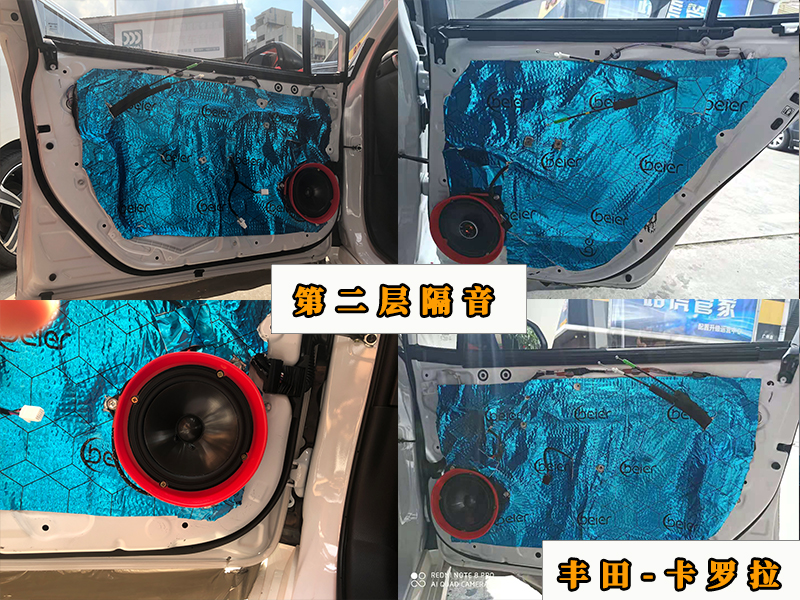 這臺(tái)卡羅拉的配置也是比較簡(jiǎn)單的,四門(mén)喇叭四門(mén)隔音加一臺(tái)圣美歌的C8處理器,選裝的是JBL的喇叭,車主偏喜歡電音,如果是喜歡人聲的車主可以考慮一下曼斯特的喇叭。