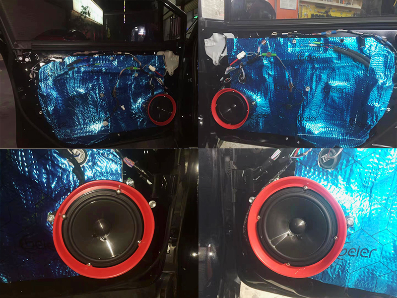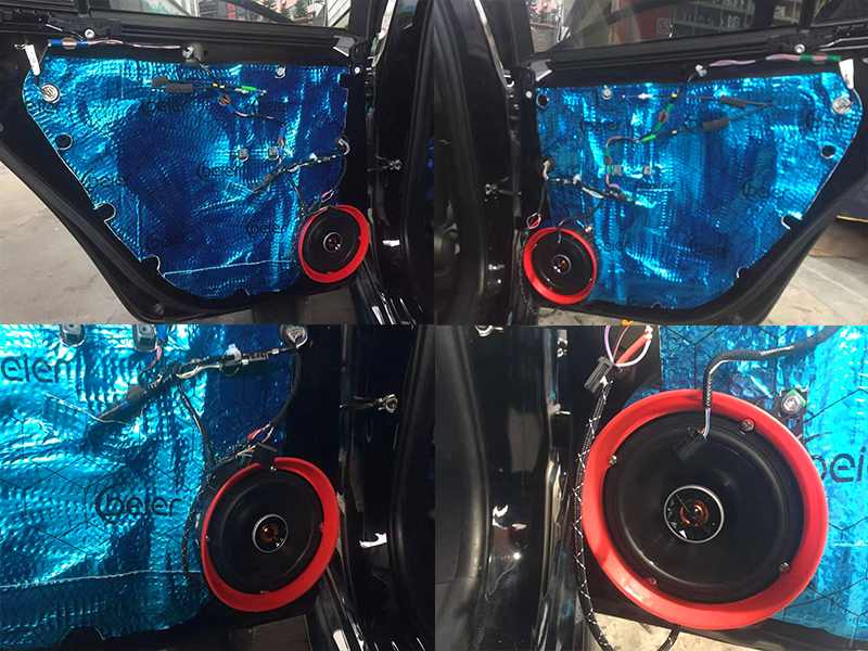 四門隔音一共是有三層的。接下來是第二層和裝喇叭,第二層的作用是做箱體和第一層形成一個封閉的箱體。傳播回響更加給力的那種。喇叭的安裝我們一直都是使用專車專用的喇叭墊和防水喇叭罩。對原車的保護(hù)和后期喇叭的維護(hù)我們都是很用心的哦