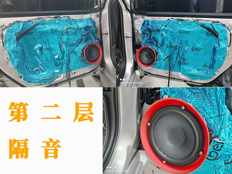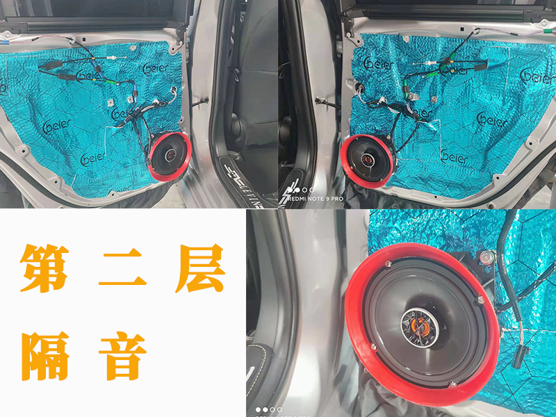 第二層隔音的貼法和第一層相差無(wú)異,都是使用滾輪來(lái)壓緊。但第二層主要是為了制造箱體,相當(dāng)于您的四門(mén)車(chē)門(mén)就是四個(gè)移動(dòng)的音響。四個(gè)車(chē)門(mén)喇叭的安裝都是使用專(zhuān)用的配件,例如專(zhuān)車(chē)專(zhuān)用的喇叭墊,麗音的防水喇叭罩。使得喇叭的使用壽命更長(zhǎng),安裝的損耗降到最低。