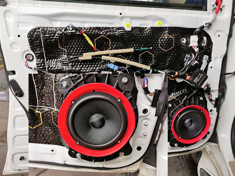 門板喇叭的升級安裝,非常的講究專業(yè),一定要使用專車專用的喇叭墊和導向防水罩,不但能延長喇叭的使用壽命,100%提升音質效