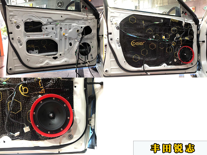 前門板做了三層隔音,兩層止震板和一層吸音棉。同時更換了銳志的專用喇叭墊,直接無損把喇叭安裝上去就可以了