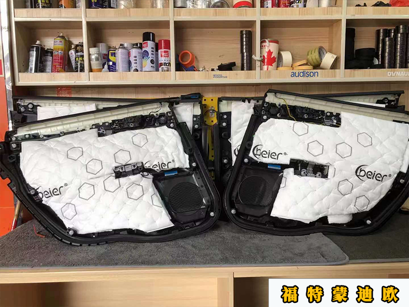 升級音響基本都是包括隔音的,這里使用的材料是貝爾的黑膜,相對來說會比藍膜要厚一點,效果也會好一點!第一層隔音是減少共振和風噪的!