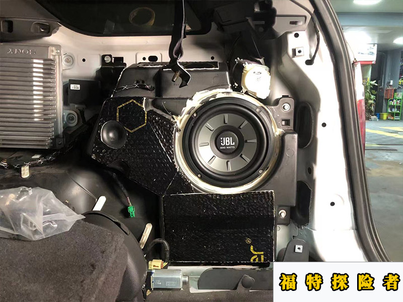 后尾箱的低音炮是原車本來就有的,這邊升級的JBL8寸低音也是專用的,直接裝上去就可以了。