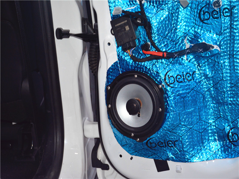 對于30來萬左右的SUV車來說稍微對音樂有點(diǎn)要求已經(jīng)不能滿足他們的聽音要求水平,下面我們來看看是怎么改裝音響及隔音的。 我先來介紹一下配置:前門用的是原裝進(jìn)口意大利QRS AS-165二分頻套裝 4歐實(shí)際功率50W,后門用的是原裝進(jìn)口意大利QRS AC-165同軸4歐實(shí)際功率40W用一臺(tái)圣美歌PK700.4 100W*4 大功率四路實(shí)際輸出D類數(shù)字功放推動(dòng)配上QRS綜合型音色讓它發(fā)揮淋漓盡致高音甜、中音準(zhǔn)、低音勁、用一句話描述就是通透。再配上惠威V6 8寸小鋼炮來補(bǔ)充聲音的超低音頻段使聲音更加耐聽。