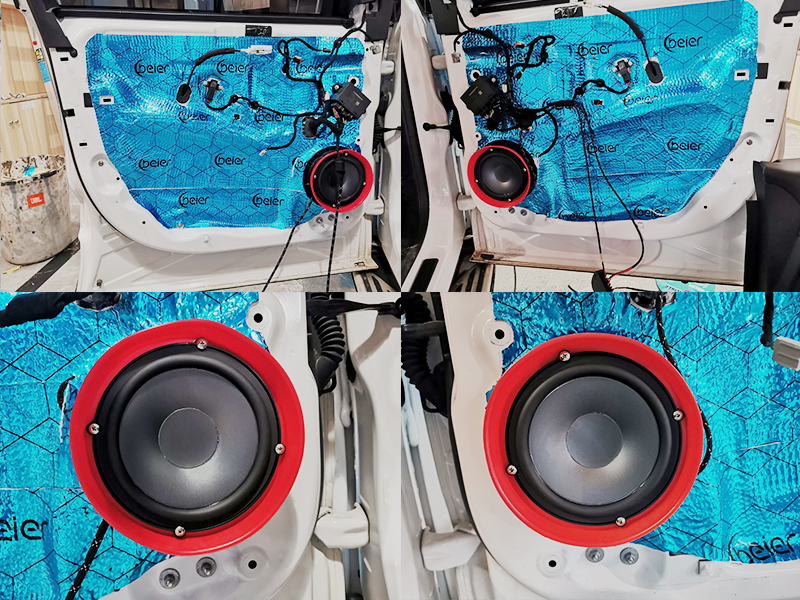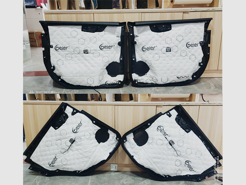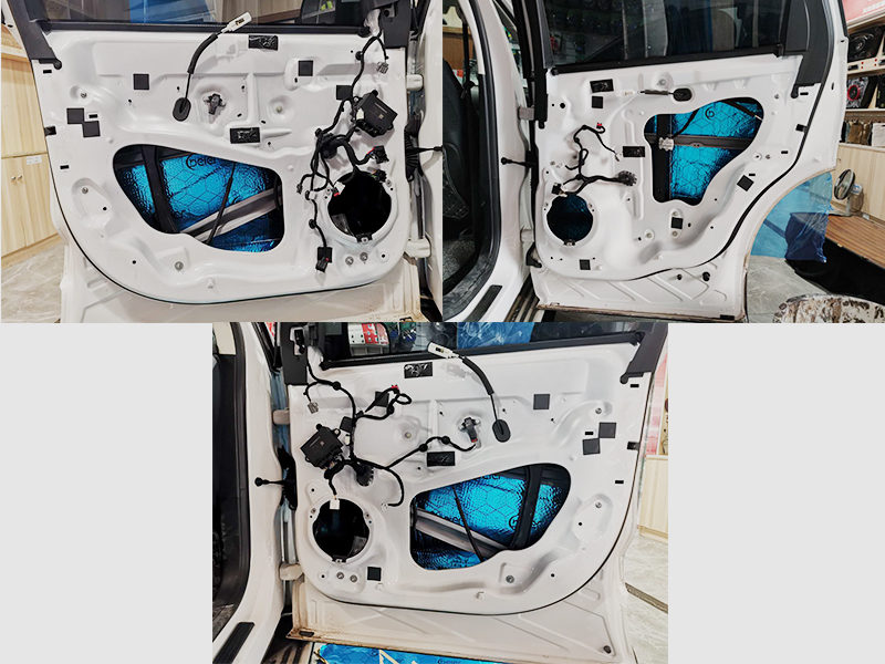 按照慣例我們第一步就是要升級(jí)全車隔音。我們一般的套餐都是給四個(gè)車門做隔音。當(dāng)然有些高追求的車主對(duì)葉子板,底盤,葉子板。引擎蓋,后尾箱等都做了隔音。只要您有需求。我們一定能服務(wù)好您,這里主要是使用貝爾的藍(lán)膜來(lái)給車門內(nèi)壁做隔音。主要是隔音和減少共振