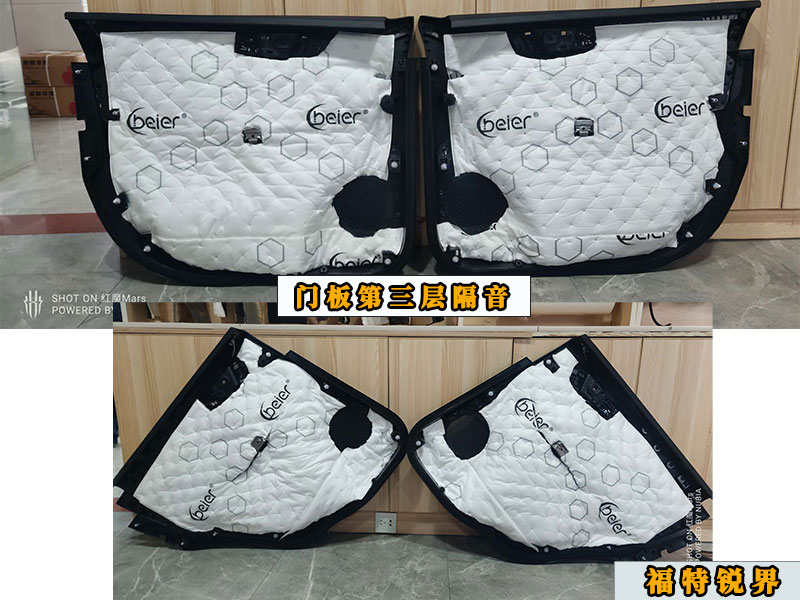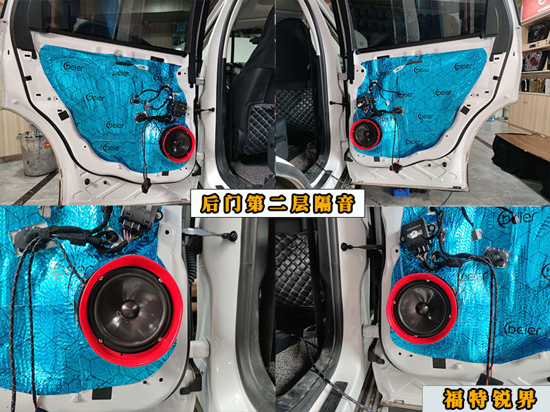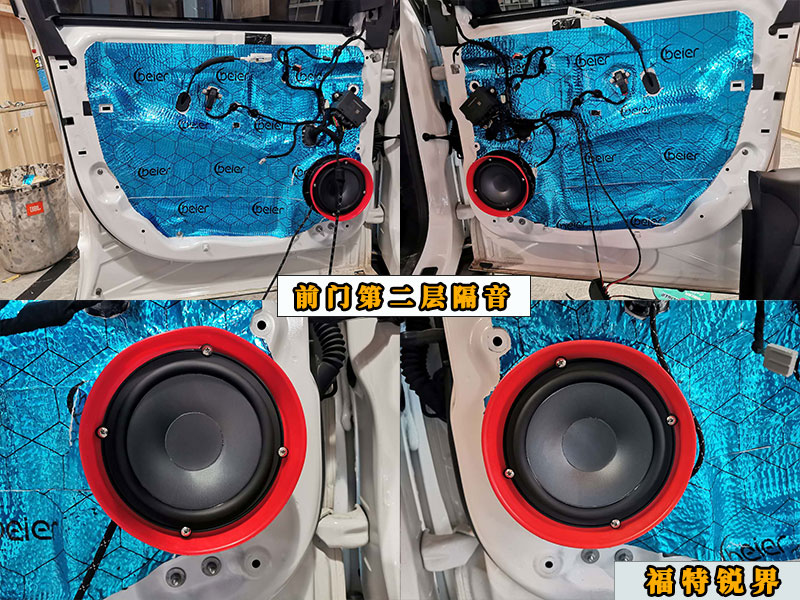 現在看到的是第二層隔音,主要作用就是密封性,主要是增加回響和減少失真。還有一個重要的作用就是制造箱體,生活中也沒有看到哪個音響是不帶音箱的吧哈哈哈!至少都有一個回響罩。第二層隔音就是讓你的門板變成一個移動的音箱,喇叭的安裝上都有專用的配件的,包括喇叭墊和防水罩卡扣之類的。都是專車專用的,原喇叭位安裝。