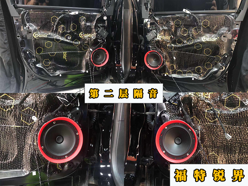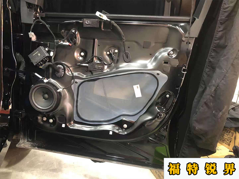 這是第二層隔音,主要是密封整個車門,減少失真和制造箱體。貼好第二層隔音之后就可以安裝喇叭了。這里需要更換專用的喇叭墊和防水罩,這樣的話就不用對原車產(chǎn)生損耗,直接原車位安裝就可以了。