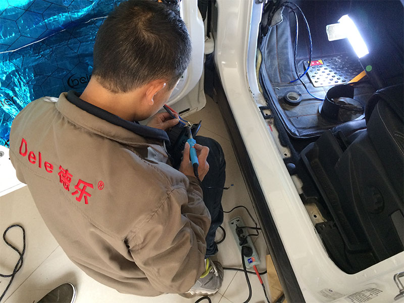 技師認(rèn)真的安裝喇叭、每個(gè)接線的地方都用焊錫焊上