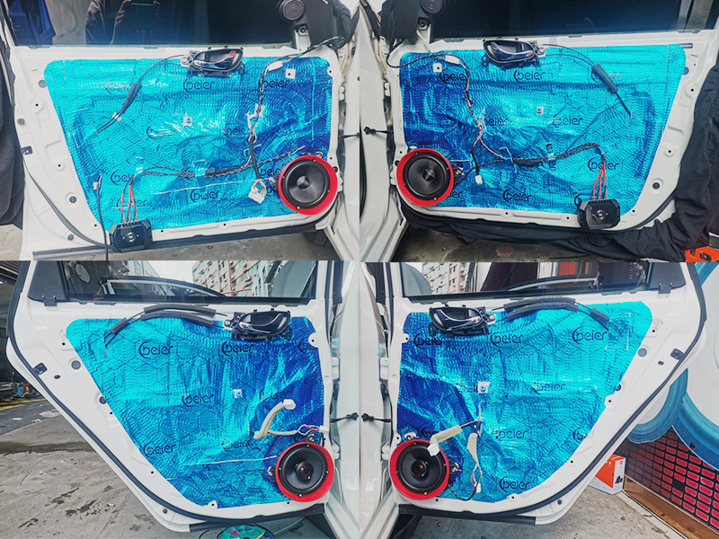 聲音傳播最好的環(huán)境就是密閉的環(huán)境。這樣聲音能盡可能的留在您的愛車?yán)铩W鐾甑谝粚痈粢艉螅覀円龅木褪前惭b好喇叭后,連接好線后,再做一層隔音,使用的依舊是貝爾的隔音藍(lán)膜。這里講究的是密閉性。