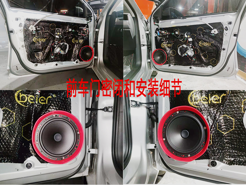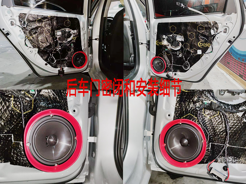 首先我們要給車門做隔音處理,畢竟再好的喇叭隔音不好也有點牽強。這里使用的是黑金剛的隔音棉。加厚了車門鋁板的厚度減少共振,讓隔音更好。