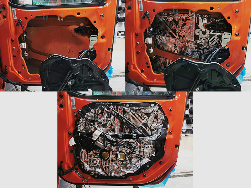 這邊我們第一步也還是做好隔音。雖然牧馬人的門板厚度可以說比其他的車型都要厚。但密封性還不是特別好!這位車主追求的是享受質(zhì)感。所以安排上。這里用的是CSP小炸彈隔音棉
