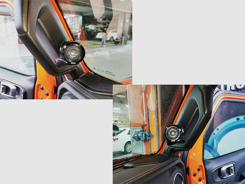 因?yàn)楦咭粑皇堑鼓<拥?,在前車的A柱上加了四個(gè)高音。倒模加裝也是很不影響外觀,也不會(huì)有所損耗