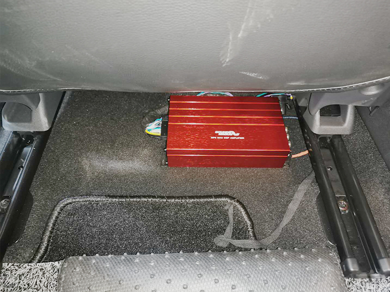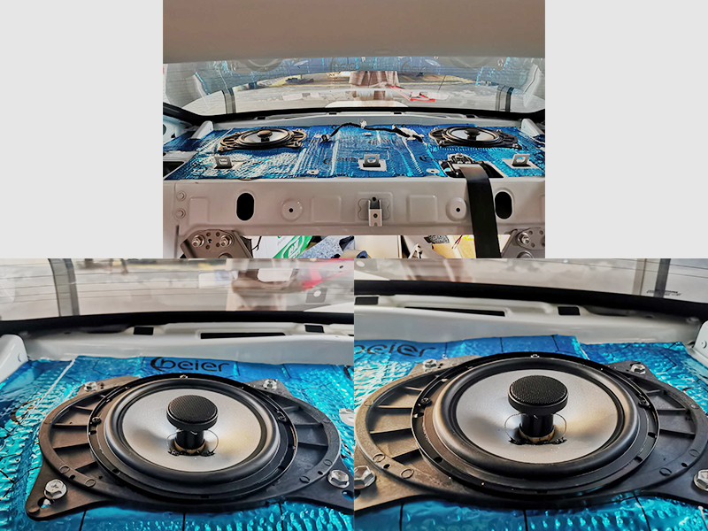 雖然四個(gè)車門都做了隔音,但后門板上面是沒(méi)有中低音喇叭的!但是在后平臺(tái)就由兩個(gè)同軸。更換喇叭的同時(shí)我們也用貝爾藍(lán)膜做了封密處理。