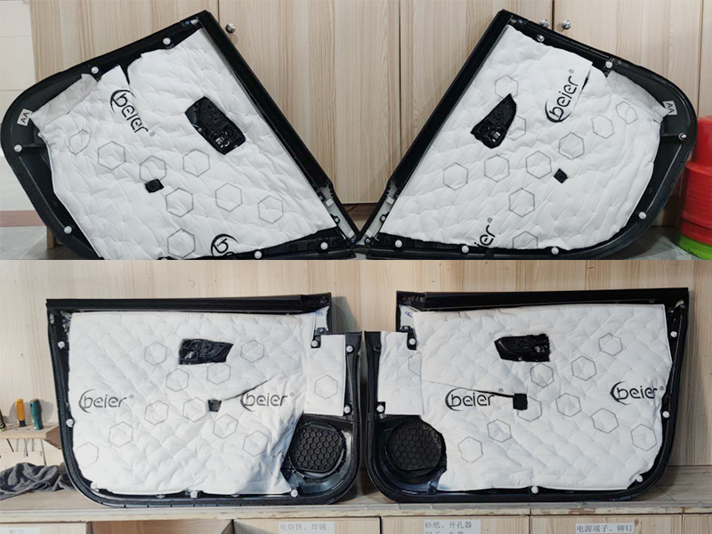 這里我們使用的是貝爾的隔音藍(lán)膜,黏貼式的,不會(huì)對(duì)您的愛(ài)車造成損耗!隔音效果杠杠的,加厚了門板的厚度的同時(shí)也能減少共振