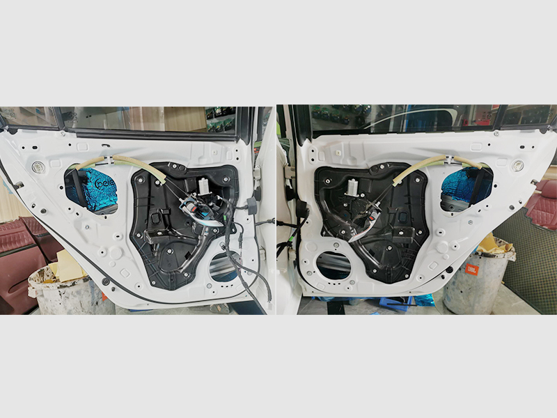 我們會使用保護膜環(huán)繞您的車身,防止剮蹭。升級音響永遠要先做四門隔音。有些車主要求高的是全車隔音,包括葉子板,引擎蓋,甚至是整個底盤。使用的材料是貝爾的隔音藍膜,黏貼式的