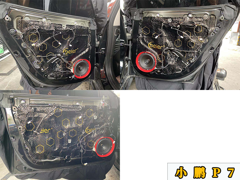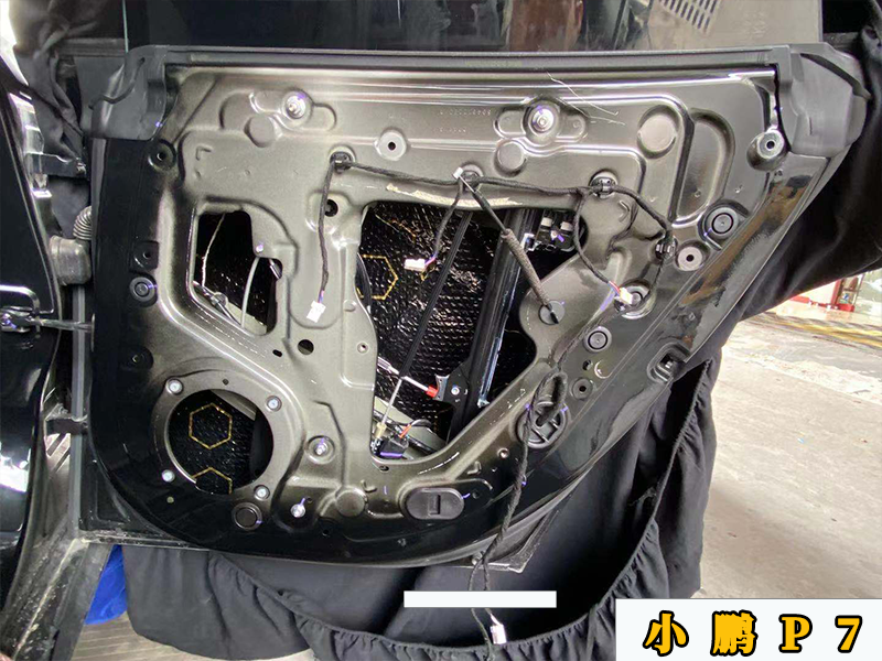 升級音響的第一部必須是升級隔音,雖然P7是純電車,噪音沒有那么大,但高速行駛中的風(fēng)噪呀路噪呀還是挺大的,另外隔音也能提升原車的音質(zhì)效果。這是第一層隔音。一共有三層