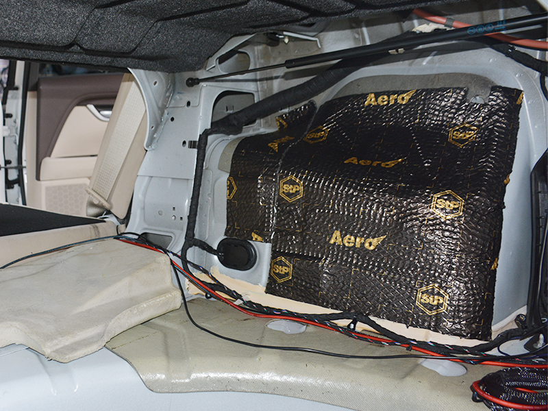 還有備胎位置,因?yàn)殇摪宓奶匦运砸彩潜容^單薄,所以我們也是需要給他著重加厚出(選用俄羅斯STP隔音)