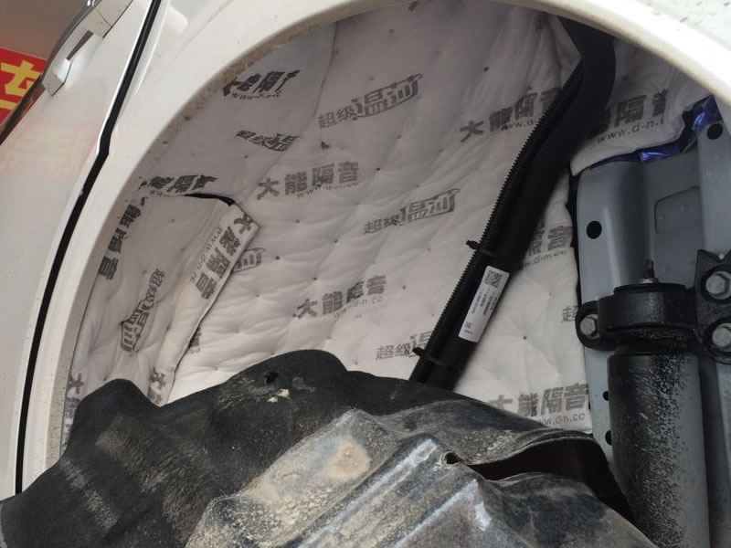 汽車在顛簸的路面上行駛的時候胎噪、路噪也非常的明顯。對汽車的輪弧和翼子板做了雙層的隔音處理,這就有效的切斷了噪聲的傳播途徑。