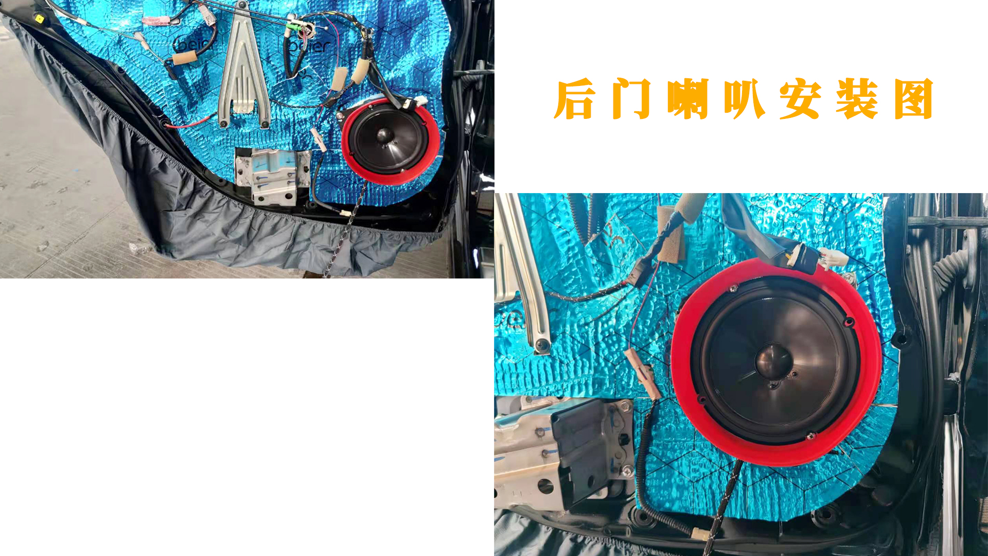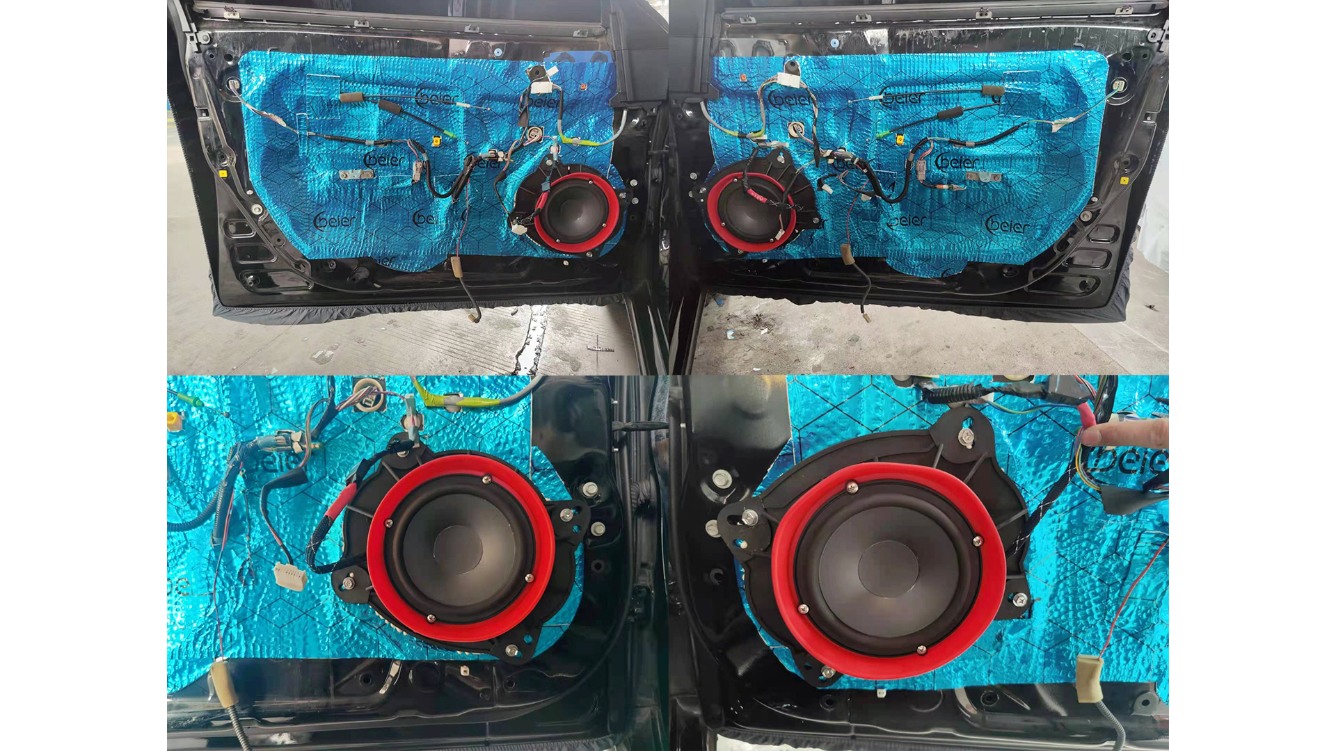 上面是喇叭安裝后的效果圖,再貼第二層隔音之后,我們才可以進(jìn)行喇叭的焊線和安裝。喇叭墊方面我們使用的都是專車(chē)專用的,不會(huì)說(shuō)不合適之類(lèi)的。紅色的是喇叭防水罩。顧名思義就是保護(hù)喇叭的!