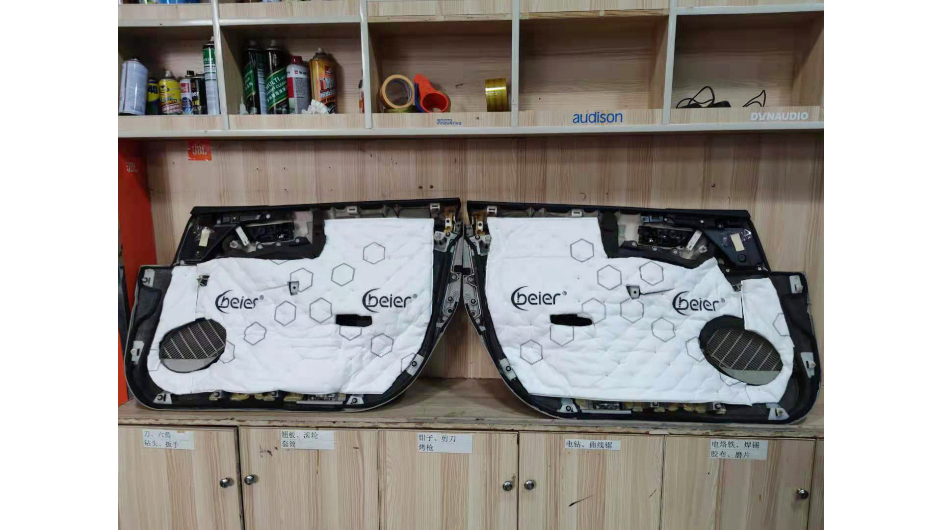 上圖是第一層隔音的完成效果圖,第一層隔音基本就是增加門(mén)板的厚度。減少共振,然后就是作為門(mén)板箱體的一邊。也有一些車(chē)主不裝喇叭只是來(lái)做隔音的,畢竟行駛過(guò)程中產(chǎn)生的異響確實(shí)讓人很煩躁!