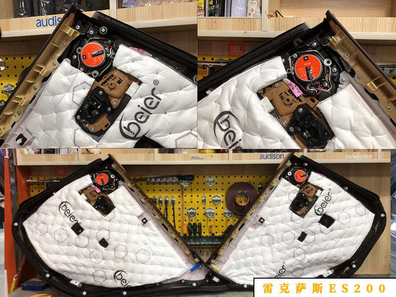 雷克薩斯的ES200新款,升級全車的6個喇叭,前門兩個6.5寸的中低音喇叭!后門兩個中音喇叭,欠儀表臺左右兩邊各有一個高音喇叭!加裝一臺DSP和一臺功放,基礎(chǔ)四門隔音。