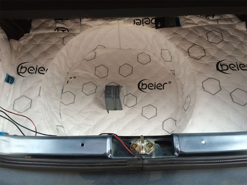 后備箱部分的隔音包括后備箱部位和后翼子板部分,后備箱隔音能夠有效地消除胎燥,降低后備箱處的隔音,改善音響效果。