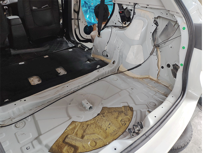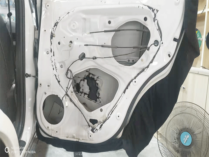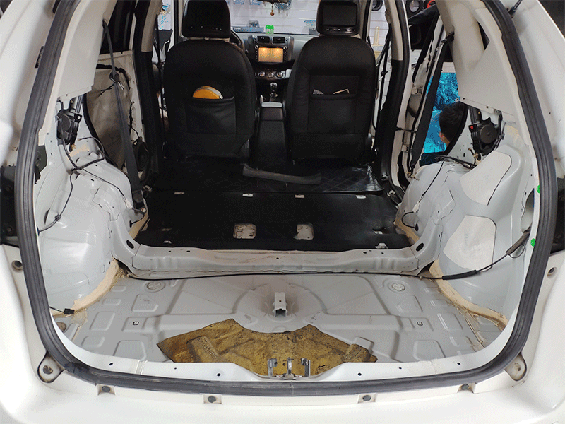 原車拆卸下來之后的圖片,需要專業(yè)的處理清理,才可以進(jìn)行隔音施工