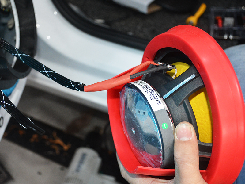 中低音安裝,套上德樂音響的專利產(chǎn)品 喇叭罩,接頭套上熱宿管加以保護。