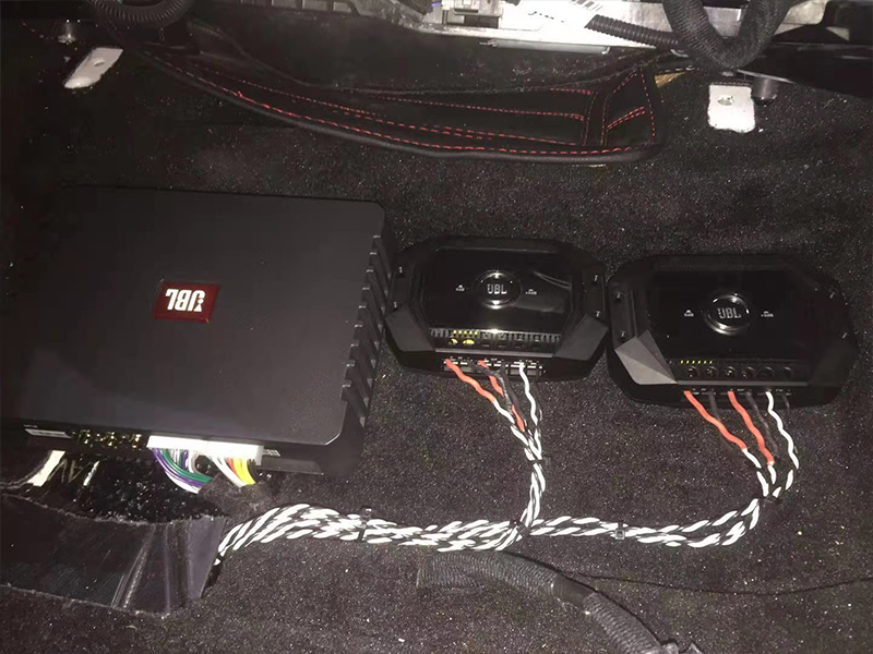 升級的喇叭依舊是JBL的喇叭。但這位車主之前已經(jīng)是做過隔音的了。所以這里我們可以直接走線安裝喇叭。