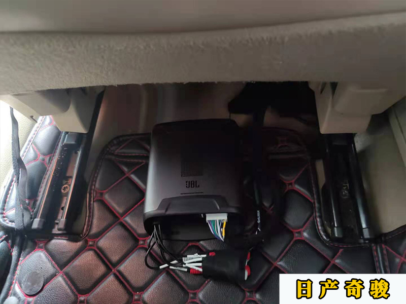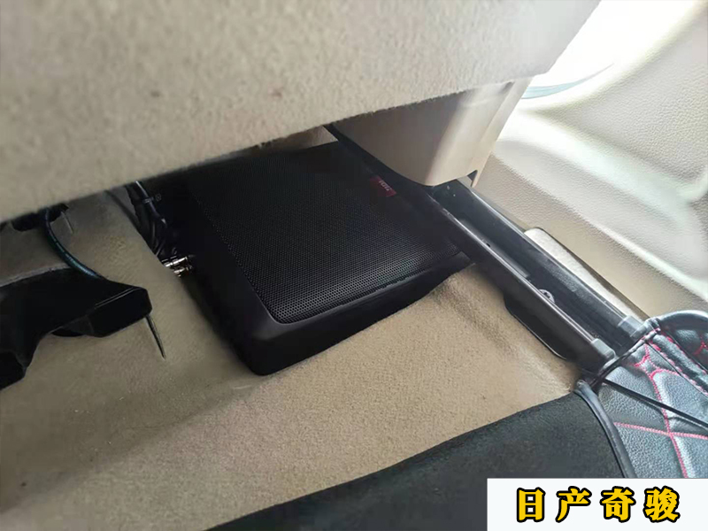 奇駿這款車呢,比起加裝箱體炮的話,這種超薄低音炮會更合適,因為在副駕駛的座位底下有一個凹糟,剛剛好能放下,腳墊一蓋上去就看不到了。一點不會影響美觀。