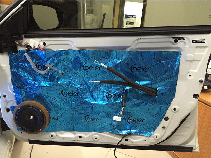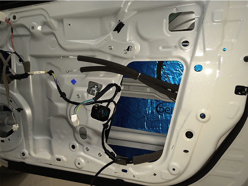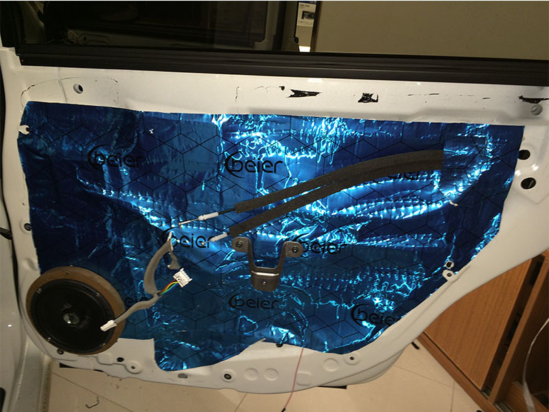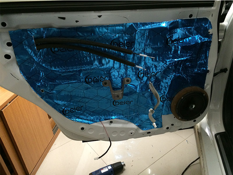 里面的一層隔音已經(jīng)做好了。現(xiàn)在開始做外面一層隔音了。門做雙層隔音為標(biāo)準(zhǔn)做法,是隔音中較為重要的,也是帶來好處較多的,不僅能夠減少門板共振與風(fēng)噪的產(chǎn)生,密封性比以前更好,門板更扎實,關(guān)門的聲音也比以前要厚實許多.雙層隔音讓門板內(nèi)部形成了類似箱體的空間,對音質(zhì)效果提升明顯
