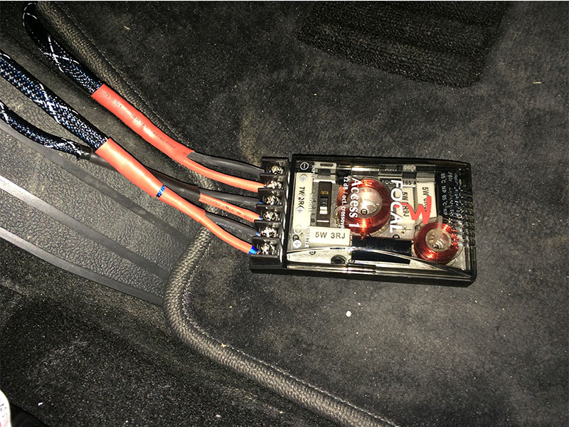 喇叭已經(jīng)安裝到位了 因為前面是套裝喇叭 自帶一個分頻器,分頻器的作用就是 主機(jī)的信號經(jīng)過分頻器進(jìn)行分頻處理之后 然后在輸出給 中低音和高音,這樣經(jīng)過分頻處理之后 整個聲場就有層次感,高 中 低 就會很明顯的表現(xiàn)出來。先做好分頻器所需要的線材