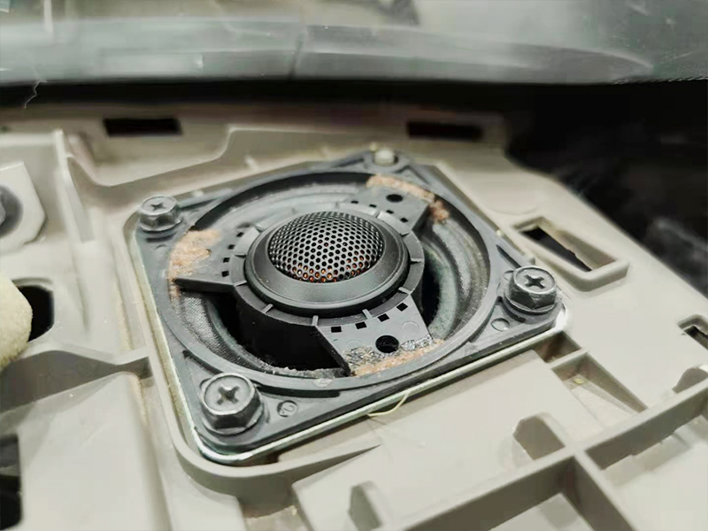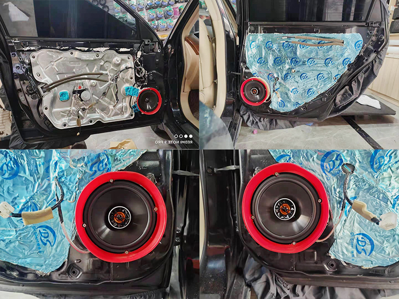 從門板得隔音上來看,著隔音也是幾年前貼的了,多少有點(diǎn)褪色的感覺了。車主選裝的是JBL的經(jīng)典套餐,6500加上6520的四門中低音喇叭和兩個(gè)高音喇叭!后門更換為同軸喇叭,中高低混合后排也能享受好音質(zhì)。喇叭的安裝,我們又專車專用的喇叭墊和喇叭防水罩。