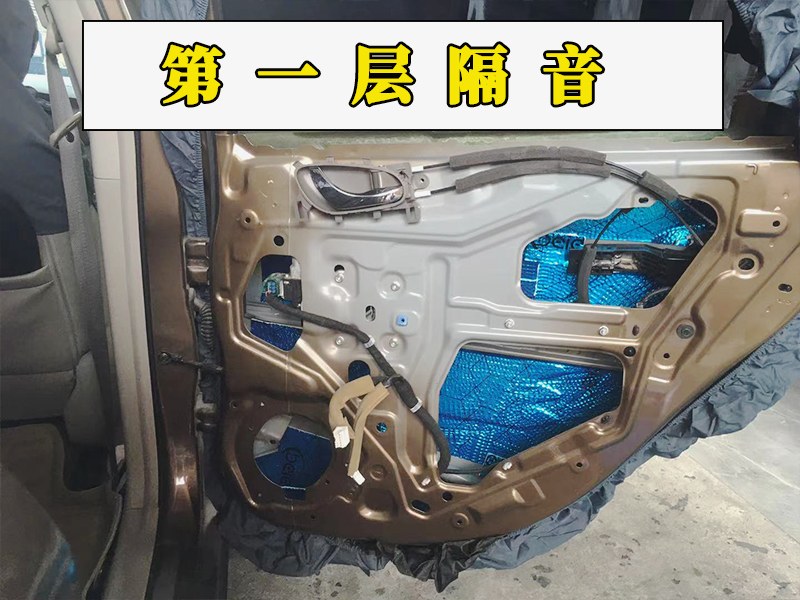 這是第一層隔音,使用的是貝爾的隔音藍膜,又名是貝爾溫莎減震板,書面意思就是減少車門異響,高速行駛中產(chǎn)生的大范圍震動等,對風噪也有一定的降噪作用,同時也增強了汽車內(nèi)部的傳播環(huán)境,減少失真。