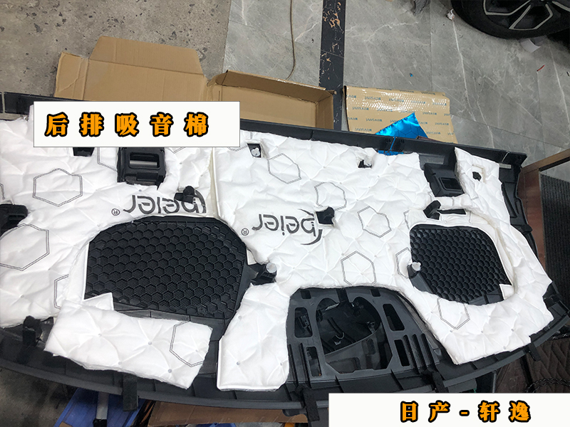 第三層隔音是降噪層,專門針對(duì)一些高頻噪音的,使用的材料是吸音面,比較厚實(shí),還能減少一些異響。后平臺(tái)也貼了。