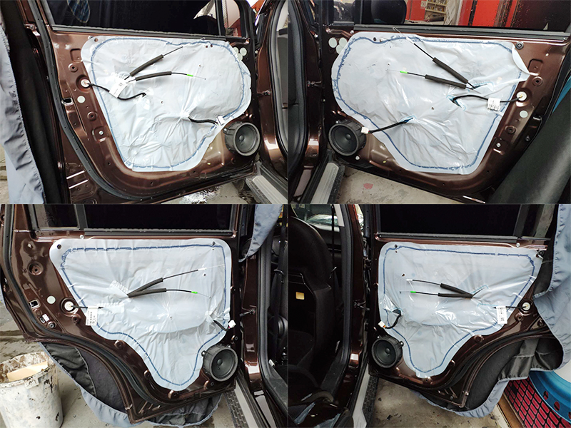 第二使用隔音的止震板取代了原車的防水膠膜,形成門板的密封箱體,提供良好的中低頻喇叭的播放環(huán)境提升音質(zhì)效果