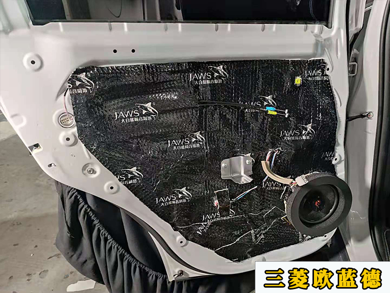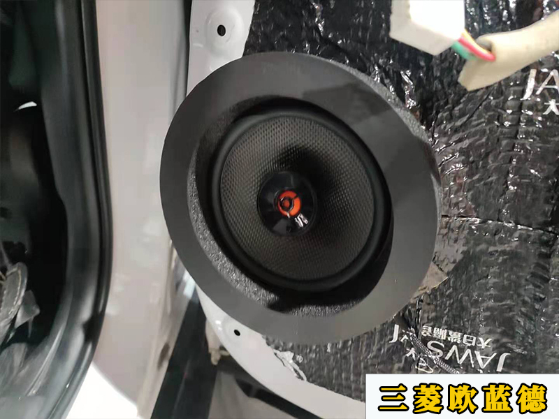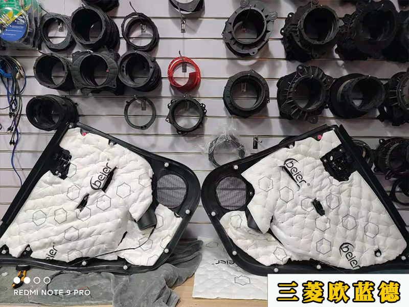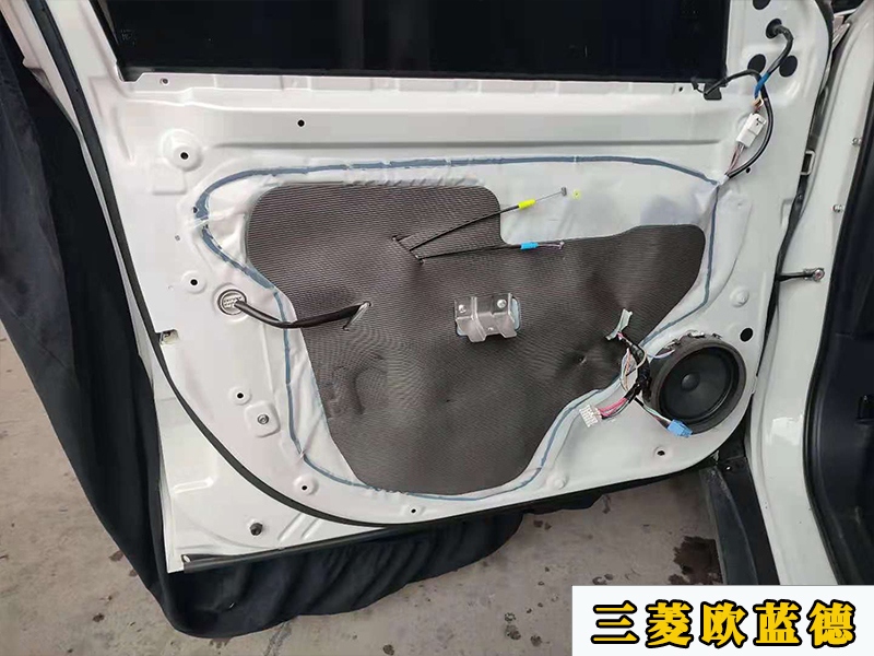 這是門板的第二層隔音和喇叭的安裝,第二層隔音是可以密封整個(gè)車門的,讓隔音效果更好,音質(zhì)效果當(dāng)然也會(huì)更好。做完第二層隔音之后,就可以安裝喇叭了,這里需要更歐藍(lán)德專用的喇叭墊,來(lái)實(shí)現(xiàn)無(wú)損安裝。喇叭外面那層是防水罩來(lái)的。
