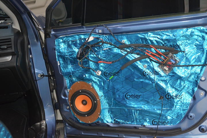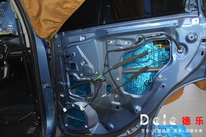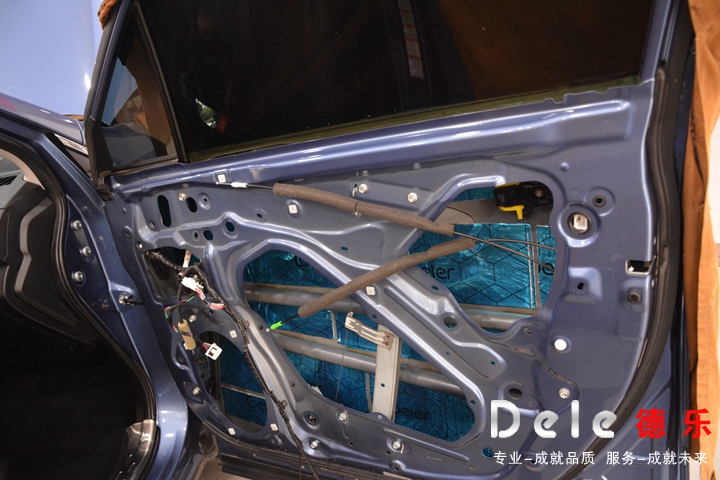 外層隔音后將門板密封,代替之前那張膜起到最基本的防水作用,還能有效阻隔外界噪音向駕駛艙的傳入,并且提升安裝在門板上喇叭的聲色質(zhì)量,對音響效果提升更顯著。