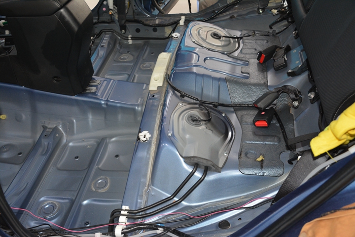 底盤隔音施工,最主要的功能是處理在高速行駛時鈑金件振動共鳴,及由輪胎傳入的路面噪音,和排氣聲導(dǎo)入后箱的共鳴音壓。