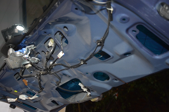 門板的拆除,可以看到原車是沒有做任何隔音的,門板上的空洞也比較多,容易 有風(fēng)燥的傳入;