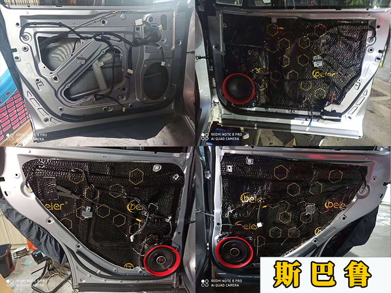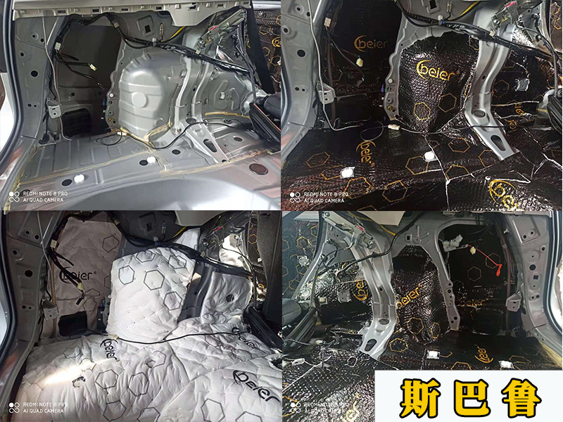 這臺斯巴魯升級的是四門的喇叭和四門、底盤、尾箱的隔音,主要是提升車內(nèi)的舒適度,據(jù)車主放映說內(nèi)部的噪音還是有點大,高速行駛的話就更大了。