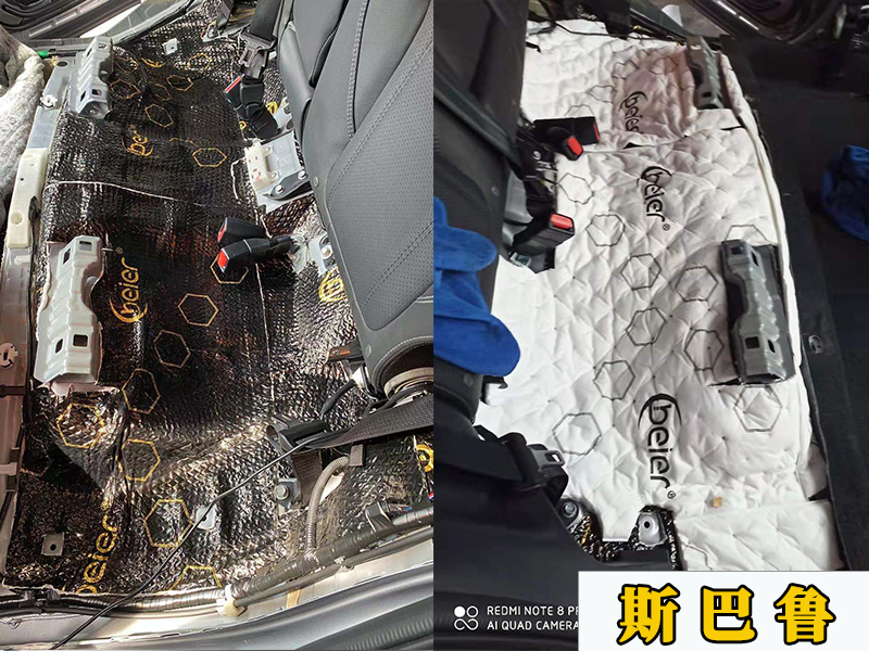 這是后排座位底下的隔音。和前面的底盤是一起施工的,可以看到也同樣是兩層隔音。