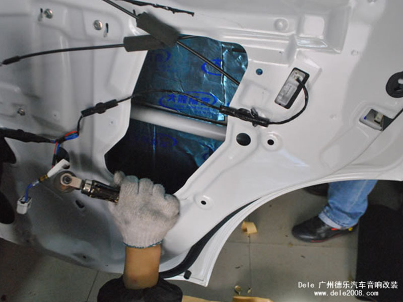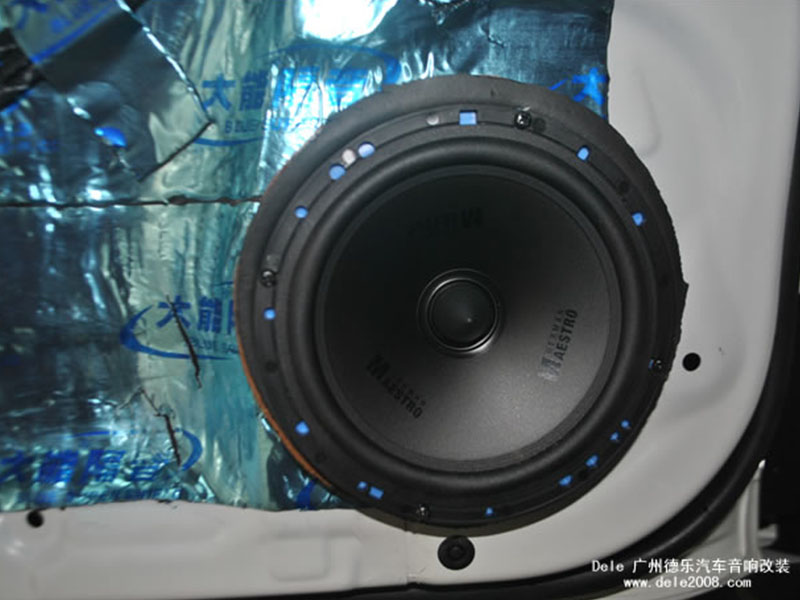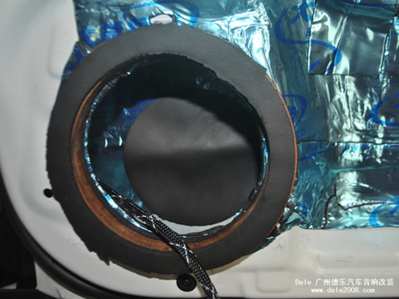 安裝喇叭前,先在車門喇叭圈周圍墊上吸音棉,同時門板內(nèi)也貼上吸音棉,以吸去雜音。雖說只是安裝喇叭,可這其中的玄機可大著了!這些微小的細(xì)節(jié),并不是很多改裝店都有注意到的,但同時往往也是影響整個音響系統(tǒng)的關(guān)鍵之一!德樂此舉,真可謂以小看大,從這個小細(xì)節(jié),可以看出其中專注、嚴(yán)謹(jǐn)?shù)墓ぷ鲬B(tài)度~!